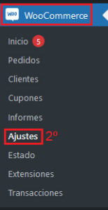 - En el menú lateral izquierdo, haz clic en “WooCommerce” > “Ajustes”.